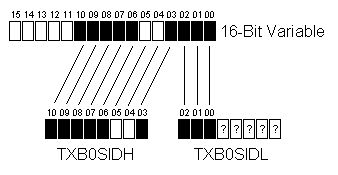 1 | TXB0SIDH = ((16-Bit Variable>>3) & 0xFF); |