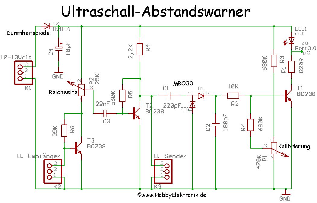 Hallo, Ich habe auch ein Problem mit Ultraschall. Ich habe diese Schaltung nachgebaut. Nur leuchtet bei mir die LED dauernd. Kann mir jemand sagen was die Ursache ist und wie ich sie beheben kann. Ich hab schon die Transistoren und Dioden ausgetauscht und weis ich nicht was ich noch machen soll. Gruß Jörg