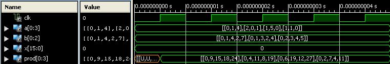 hallo, der Code entspricht diesem hier http://vhdlguru.blogspot.com/2010/03/matrix-multiplication-in-vhdl.html Nur weiß ich leider nicht wie ich den Code testen soll? ich habe in meinem Fall das x im File mat_tb.vhd weggelassen und a und b fix vorgegeben. mfG