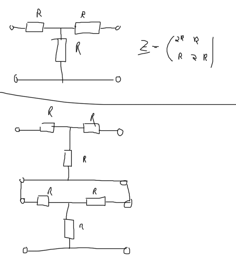 hallo, z matrix müsste folgendermaßen aufgebaut sein: Z11 = 2R Z12 = R Z21 = 1/R Z22 = 2R gruß