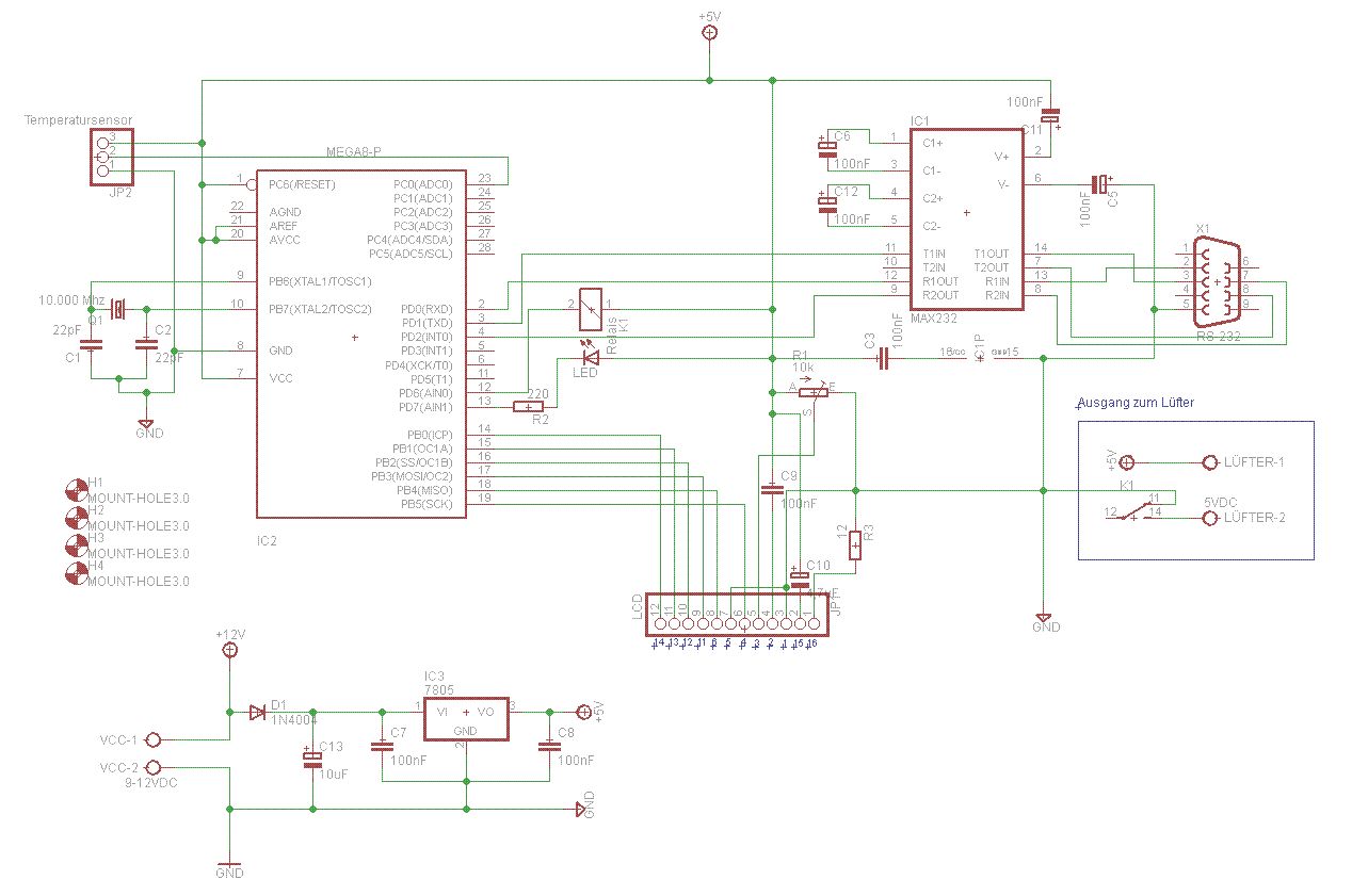 Temperatursensor an einem Atmega8 verbunden. Habe aber mit dem Max232