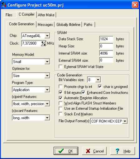 Hallo, ich arbeite mit CodeVision, AVRStudio und dem mega64L. Nach Start und Initialisierung meines Programmes steht der Stackpointer auf 0x10FF. Sobald die erste Call-Routine aufgerufen wird, dekrementiert der Stackpointer auf 0x10FD. Schaue ich nun im (Data)Memoryfenster, unter der Adresse von 0x10FE und 0x10FF vom Studio nach, so findet sich da aber nicht die Rücksprungadresse, sondern der Wert 20h 20h. Somit ist klar, dass das Programm nach dem inkrementiern des Stackpointers abstürzt. Stelle ich in den Projektsettings von CodeVision(siehe Anhang) die Heap size von 0 auf 1024 ein, so funktioniert alles Bestens. Bei anderen Projekten, mit mega16 und mega128, habe ich nie den Heap size benötigt. Kann jemand dieses Phänomen erklären? Vielen Dank! Die Projektsettings stehen im Anhang.