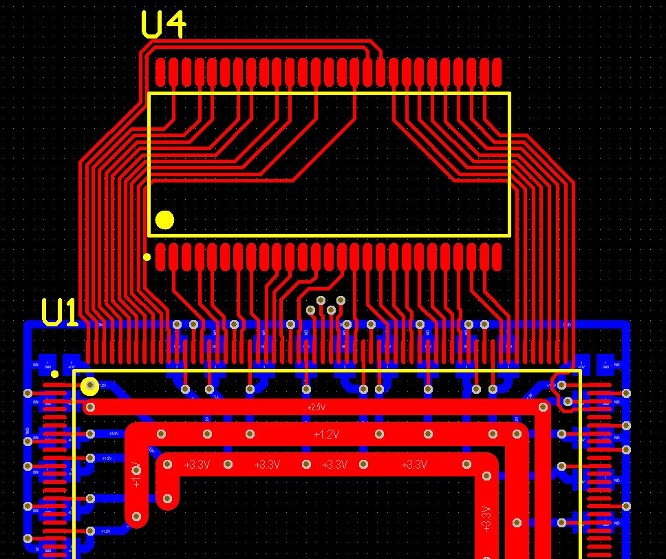 Falk Brunner schrieb: > Nein. Ich sage Massefläche, nicht so ein zerstückeltes Etwas. > Und die muss DURCHGEHEND sein, auch zum FPGA hin, denn es ist ein > STROMKREIS. Ist mir klar! Später kommt auf ganze Bottom-Seite einen GND-Polygon. Falk Brunner schrieb: > Räumliche Trennung von CLK, der Rest ist OK. Leitungslängen sind auch > OK. > Post nicht gelesen? Alle Posts habe ich natürlich gelesen :) Auf die Platine kommen zusätzlich noch 4 Stück 256Kx16 Asynchronous HighSpeed SRAM. Diese brauchen kein CLK. Die Leitungslänge zum weitesten Chip ist ca. 100mm