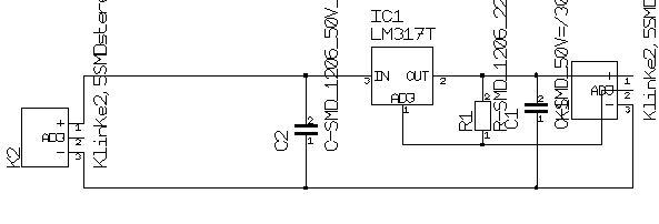 ich kann ja nun total falsch liegen aber LM317 ist doch ein regelbarer Spannungsregler, oder? Wenn mich nicht alles täuscht braucht der ein 10uF C am eingang ein 100nF am Eingang um aufschwingen zu verhindern ein 100nF am Ausgang aus gleichem Grund, ein 10uF um eine Regelschwelle zu haben und mindestens zwei R als Spannungsteiler, macht nach Adam Riese 6 Stück Hühnerfutter, aber in Deiner Schaltung zähle ich nur 3Wasauchimmer . Könnte es sein, dass Du es mit der Reduzierung der Bauteile etwas zu weit getrieben hast?