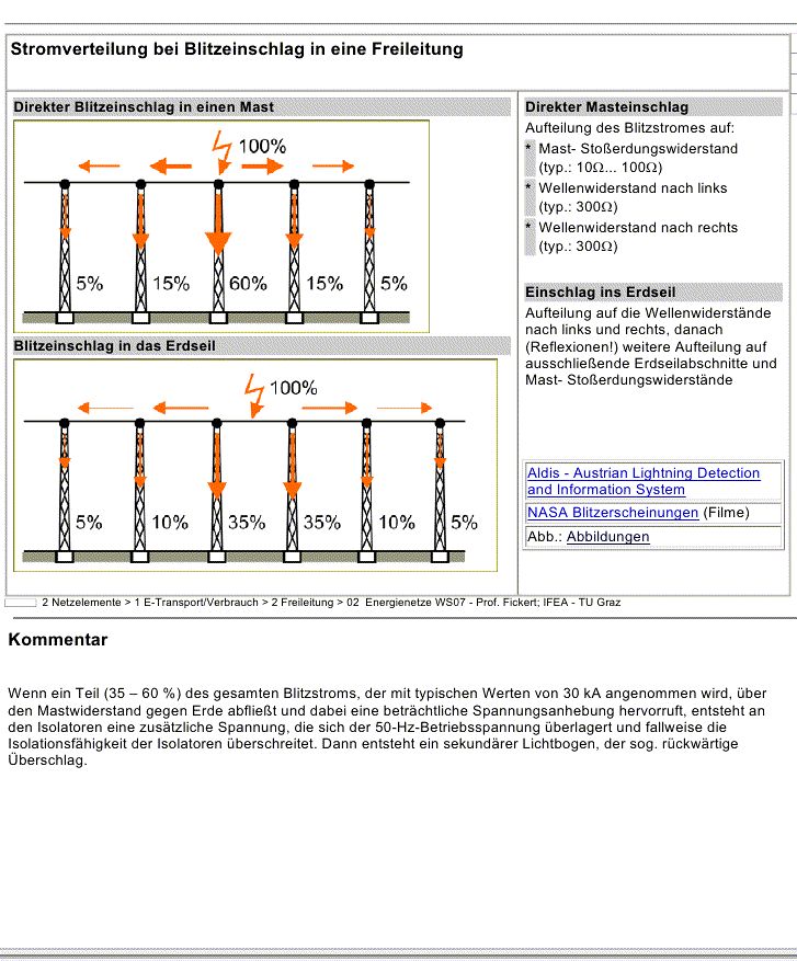 --- schrieb: > "Halten Sie zu Überlandleitungen einen Mindestabstand von 50 Metern" > > Sagt die Feuerwehr. Dem widerspricht Wikipedia mit Verweis auf Literatur "Elektrische Energieverteilung" 8. Auflage, S22, 23: "Einen guten Schutzraum stellen weiters die Bereiche am Boden unter Hochspannungsleitungen dar ..." http://de.wikipedia.org/wiki/Blitz#Verhalten_bei_Gewittern Vielleicht muss man zwischen Nieder- & Mittelspannungsleitungen und Hochspannungsleitungen differenzieren. Erstere haben meist keine Erdseile.