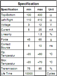 Hallo, ich möchte ein EA Touch Panel Touch128-2 (4-wire) in Betrieb nehmen. Die Spezifikationen habe ich angehangen. Der maximale Strom ist mit 25mA angegeben. Betreiben möchte ich das Panel genau wie den Atmega mit 5V. Genau da stoße ich aber auf ein Problem. An right-left ergeben sich die 25mA bereits bei 4.1V, bei 5V an top-buttom sind es genau 25mA. gemessener Widerstand: top-buttom 183 Ohm, left-rigth 150 Ohm Gibt es eine andere Möglichkeit ausser Vorwiderstände, welche den Messbereich einschränken würden, um das Panel an 5V innerhalb der Spezifikationen zu betreiben? Gruß Jörg