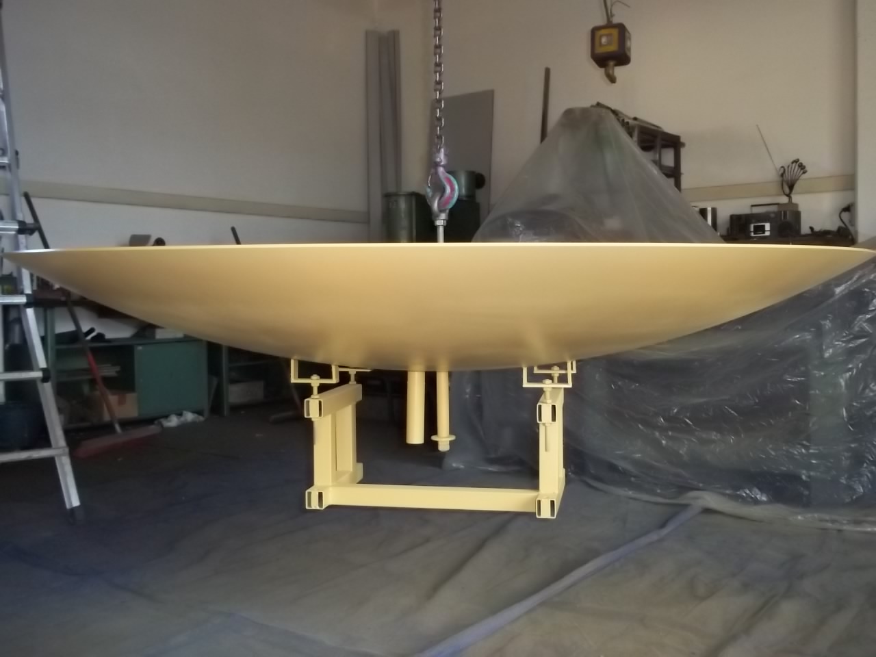 2000 mm Durchmesser, 5 mm Edelstahl. Eigentlich eine Brunnenschale, aber mit LNB auf den richtigen Sender ausgerichtet, könnte das was werden. :)