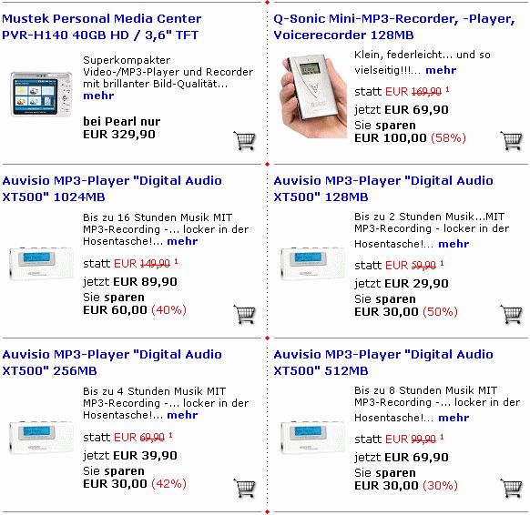 @Rufus T. Firefly: Da habe ich richtig was verpasst. Aber wenn man nach dem billigsten Preis pro GB sucht, dann sind die CF-Karten immer noch halb so teuer. Außerdem habe ich hier noch eine 500MB und eine 128MB herumliegen, welche aus der Zeit stammen, wo 1GB noch 500E gekostet hat :-) http://www.geizhals.at/deutschland/a144233.html http://www.geizhals.at/deutschland/a129647.html http://www.geizhals.at/deutschland/a46752.html Mh mit den Festplatten meinst du doch normale ATA, oder? Da könnte man ja so ein etwas größeres Microdrive nehmen ;-) http://www.geizhals.at/deutschland/a149026.html Das mit den 16Bit könnte man zu einem Geschwindigkeitsvorteil ausnutzen. Mann müsste nur die Freqenz den Atmels mehr als doppelt so hoch haben als die der ATA-Übertragung. ;-) Mh ich dachte eigentlich, dass 200kbit/s eine nicht zu vernachlässigende Übertragungsrate (für den Atmel)ist... Naja das kommt wohl auch darauf an, wie man den programmiert.