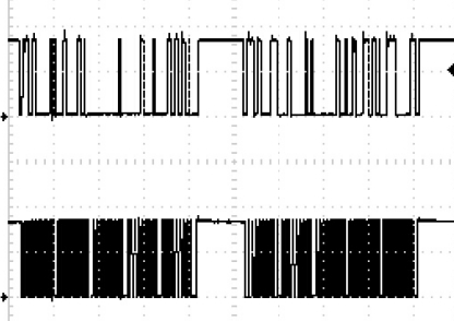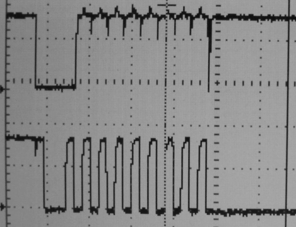 Also nochmal kurze Zusammenfassung: Auf dem Oszi-Bild sieht man dass das erste Bit (bei I2C wird MSB zuerst gesendet) auf 0 ist und der Rest auf 1. Das entspricht der Adresse 3f mit gesetzten R/W-Bit. Ausserdem sieht man auf dem rechten Bild (ev Auszug aus dem Datenblatt) dass der Slave auch eine richtige Addresse (die "any-Sensor" Adresse) nicht mit einem ACK beantwortet. Dass ist ein Bruch zur I2C-Konvention! Ich weiss nicht was BASCOM mit der Slave-Adresse macht, aber zumindest scheint die "i2creceive" Routine nicht zu funktionieren. Ein Ausweg ist vielleicht es zu Fuss zu machen wie in Beispielen vorgemacht: I2cstart I2cwbyte &HFF Adresse mit gesetztem R/W zum Lesen des nächsten Byte I2crbyte X, NACK I2cstop Vielleicht mach dann auch das fehlende ACK-Bit keine Probleme !!?? Gruss Klaus