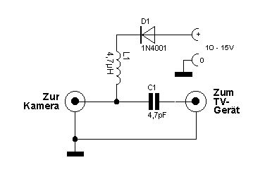 Hi, Ich habe 4 Kamaras von Philips(VK 4902) mit dem dazupassenden Monitor. Der Monitor hat nun seine Dienste verweigert. Die Kamaras bekommen die Versorgungsspannung über das Coaxial-Kabel(schaltplan für einspeisung schon gefunden). Die Kamaras geben das Bildsignal als HF-signal (VHF-I CH3 od. 4). Nun bräuchte ich einen Umschalter, der zwischen den Kamaras umschaltet und an einen Fernseher weiterleitet. Kann ich das mit Relais machen, oder habe ich dann ein Problem wegen HF? lg, Stefan