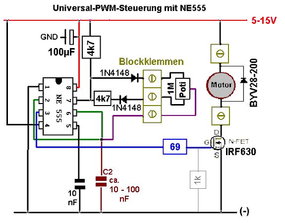 Hallo, ich habe eine Frage zu einer PWM Motorsteuerung, die ich mit den NE555 realisieren möchte. Da es ein 24V Motor ist möchte ich ihn gerne mit 24V betreiben, jedoch kann der NE555 ja nur maximal 15V. Kann ich an dem Motor die 24V nehmen und den Ne555 ein 9V Block spendieren? (Natürlich wird die Masse der beiden Batterien verbunden) Kann der Motor dann immer noch ganz durchschalten d. h. kann er sich genauso schnell drehen als wenn ich die 24V direkt anschließe? Vielen Dank MFG