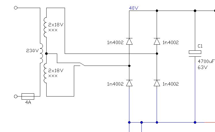 2x18V~ sind nur effektive Angabe. Deine Spitzenspannung könnte im Leerlauf *1,4 UND höher sein je nach Trafo. Dann haben Deine Eklos dicke Backen.