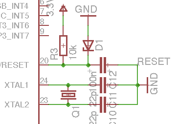 Hallo, ich habe den Reset-Pin eines AT90CAN wie im Anhang beschaltet. Betrieben wird der µC mit 3,3 V. Am Reset-Pin messe ich aber nur 2,2 V. Jemand eine Idee woran dies liegen könnte? Ich kann auch nicht per AVRISP MKII auf den Chip zugreifen. Angeschlossen ist er wie auf dem Bild im Anhang. Hängen diese beiden Problem zusammen? Der Reset-Pin liegt auch ohen angeschlossenen Programmer auf 2,2 V. Grüße Kim
