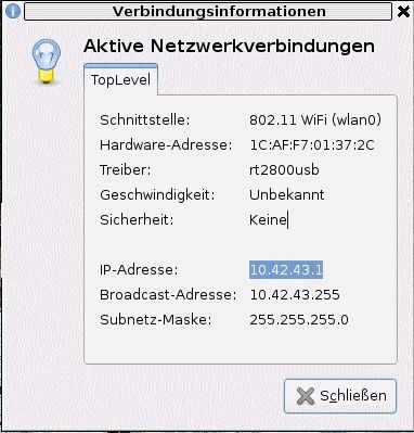 Vielen Damk für alle Hiweise und Tipps.. Das Problem will sich einfach nicht lösen lassen. Hier liegt wohl ein grundlegendes Problem vor. Werde versuchen einen Linux-Experten auzutreiben und vielleicht einen anderen WLAN-Stick kaufen. Motto: Mit Windows geht ALLES - mit Linux NICHTS.