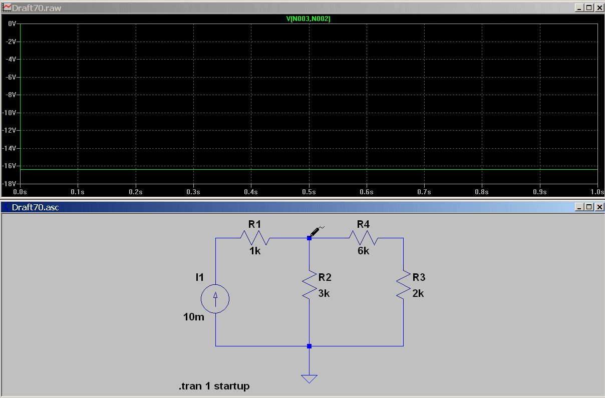 Irgendwo hab' ich einen Fehler, mit R = 4,615 k (siehe unten) komme ich auf 14,4 V. Mit R = 6 k komme ich auf (siehe Bild). U3 = 2 k * (10 mA - I2) 3 k * I2 = 14,4 V + U3 3 k * I2 = 14,4 V + 2k * (10 mA - I2)