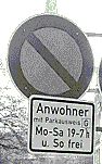 Karl Heinz Buchegger schrieb: > Es besteht ein Parkverbot. > Allerdings darf geparkt werden: > * von jederman in der Zeit von 19-7 Uhr, bzw. So überhaupt ganztags > * Leute mit Anwohnerparkausweis dürfen generell dort parken. Nico Sch. schrieb: > Dann würde da aber ein Punkt, ein Komma, ein zusätzliches "frei" o. Ä. > fehlen. Nein, dann müßten es zwei Zusatzschilder sein. Das obere mit "Mo-Fr 7-19h", daß die zeitliche Gültigkeit des Verbots auf diesen Zeitraum einschränkt. Und darunter "Anwohner mit Parkausweis G frei", daß das Verbot für diesen Personenkreis generell aufhebt. So wie es oben abgebildet ist haben Michael und Nico das schon richtig interpretiert.