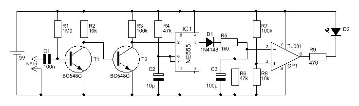 Mal so 'ne Frage: Was für eine Polarität und Spannung liegt denn an Pin 6 des OP-AMP an?? (Meiner Meinung nach negativ 9V)