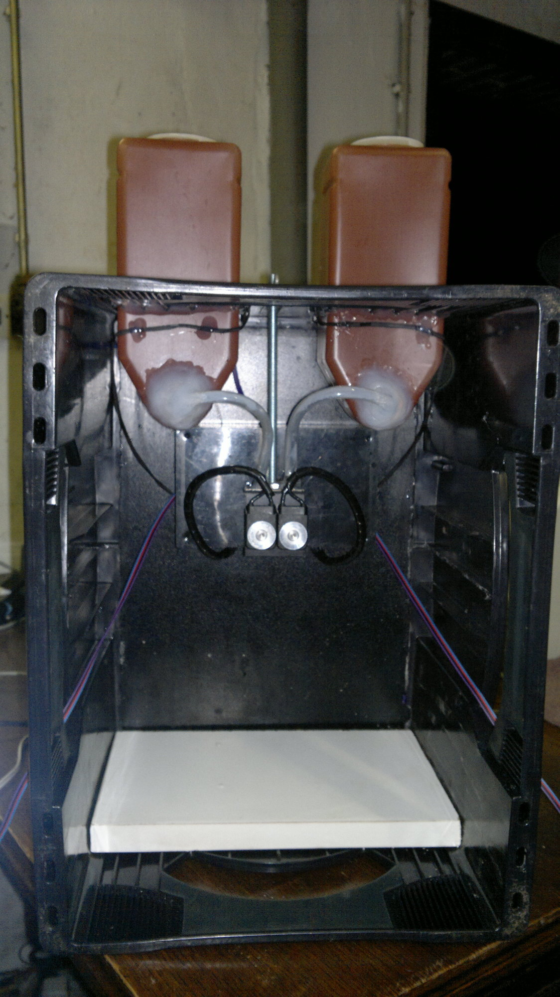 Ne ;) Meine erste Maschine war mit Pumpen, aber wenn man Cola oder Sprite o.ä. hat und das durch die Pumpe gegangen ist, schmeckte das Getränk einfach beschissen. Quasi 3 Wochen abgestanden. Jetzt habe ich einfach 2 Tanks (oder auch noch nicht ;) ) und ein Loch wo die Flüssigkeit rausläuft, sobald ein Magnetventil geöffnet wird. Das wird halt schön in einer Bierkiste verpackt und per Sensor wird erkannt(Hand auflegen) welche Flüssigkeit du haben möchtest. Dafür fehlen mir halt noch 2 passende Tanks. Gruß Ole