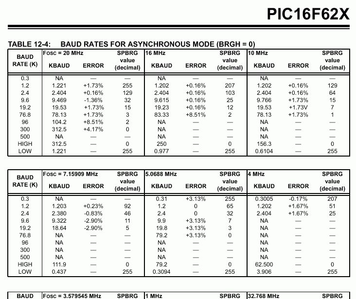 > Die Baudarte 9600 ist in meinem Datenblatt nicht definiert. Der > entsprechende Auszug aus dem Datasheet ist angehängt. Na, dann blättere doch einfach eine Seite weiter: Table 12-5: BAUD RATES FOR ASYNCHRONOUS MODE (BRGH=1)
