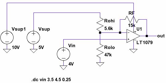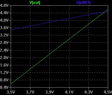 Ich würde es mit nem Opamp machen. Angehängt mal ne Simulation mit LT-Spice. Ich hab das Poti mal als Spannungsquelle Vin mit 3,5V bis 4,5V modelliert, also wie als wäre Anfang an Masse, Ende an V+ und Wiper an Opamp Pluseingang. Ich hab auf die Schnelle keinen RailToRail Typen gefunden und einfach dem nächstbesten aus der Lib 10V Versorgung gegönnt. Die "belastbare Referenz"(im Plot n003) am -Eingang aus Rohi und Rolo hängt natürlich trotzdem an 5V. mfg mf
