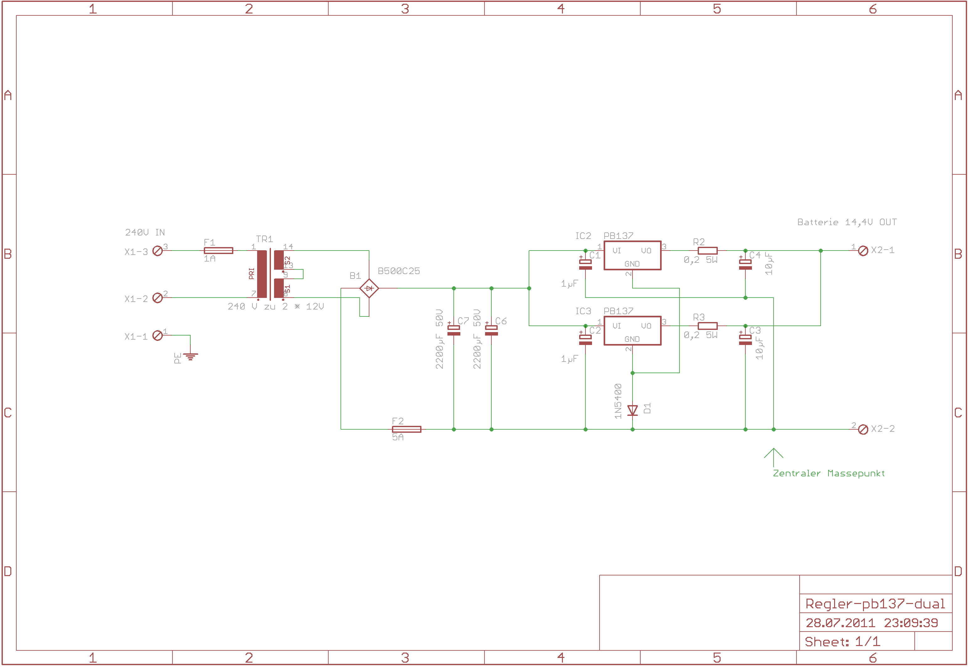 Ich habe gerade mal das Datenblatt von PB 137 genauer angeschaut. Dabei fällt mir auf, dass das Biest ja nur auf 13,7V lädt. Das ist ja nicht wirklich die 1 ste Sahne. Man muss ja zwischen Dauerladung (standby use) und manchmal wieder aufladen (cycle use) unterscheiden. Da sind die Autobatterien im "cycle use" erst bei etwa 14,4V happy .. die Blei-Gel erst bei 15V im Standby Mode würde ich bei Autodingern evt. die 13,7 akzeptieren aber bei "cycle" schon auf 14,4 hochfahren. Ich würde also , je nach Anwendung, in die Masseleitung der PB noch eine Diode (SI oder Schottky je nach gewünschter Endlösung) einhängen damit Ua etwas steigt. Im Zuge dessen wäre es vielleicht sogar interessant bei einem der Regler auch noch ein Poti (1k oder 500 Ohm) mit in die Masseleitung einzubringen. Dann klemmst du einen Lastwiderstand an die parallelgeschalteten Regler und misst den Strom am gemeinsamen Eingang beider Regler. Bei einer , gewissen Stellung des Poti ist der Strom dann der kleinstmögliche. Das heisst dann für dich, dass die Regler nicht gegenseitig den Strom verbrauchen. K.