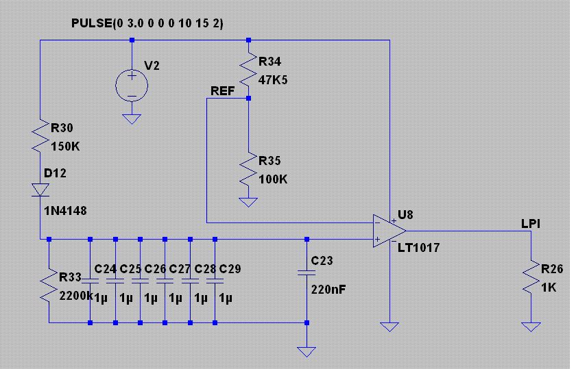 Bist du sicher, daß die Schaltung stimmt? Wird der Cap jetzt nicht sehr schnell entladen? Warum nicht nur einen hochohmigen Widerstand nehmen und die Dioden weglassen? Die Dioden machen das Ganze zusätzlich recht temperaturabhängig. Warum den Cap überhaupt auf 3,3V aufladen? Erzeuge doch eine kleinere Hilfspannung, notfalls mit einem Spannungsteiler, sodaß der LM2901 am Eingang seinen CMVR nicht verläßt.