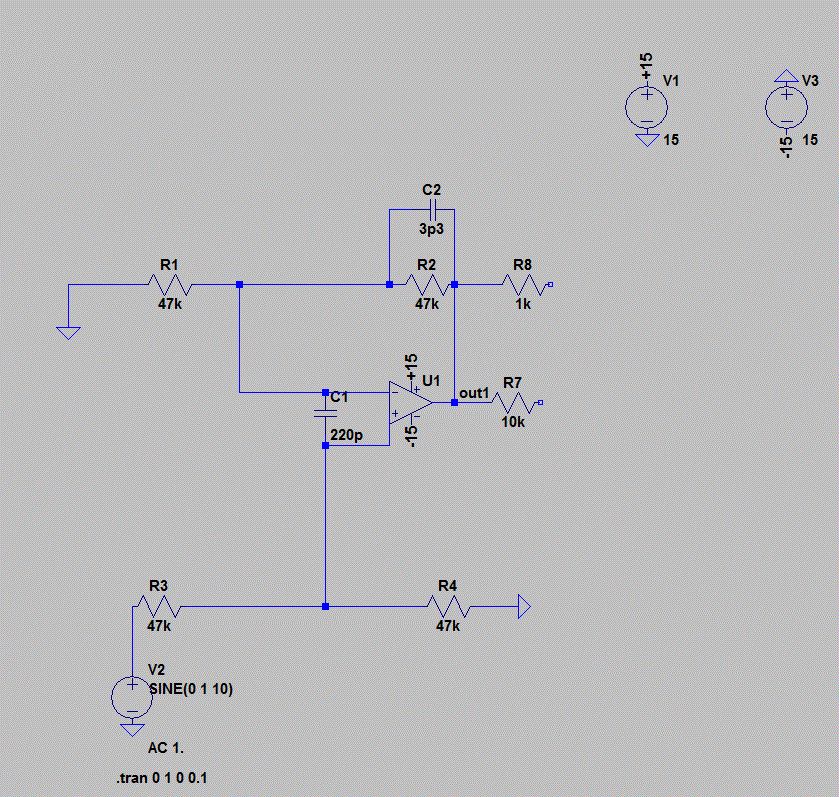Den OP37. Hatte auch schon das Datenblatt dazu durchsucht, aber nichts gefunden. Aha, das ist doch schon mal interessant. Schließlich soll die Schaltung ja nur eine Verstärkung von 1 bewirken. So ein Verhalten kann man dann wohl auch schlecht simulieren, oder?