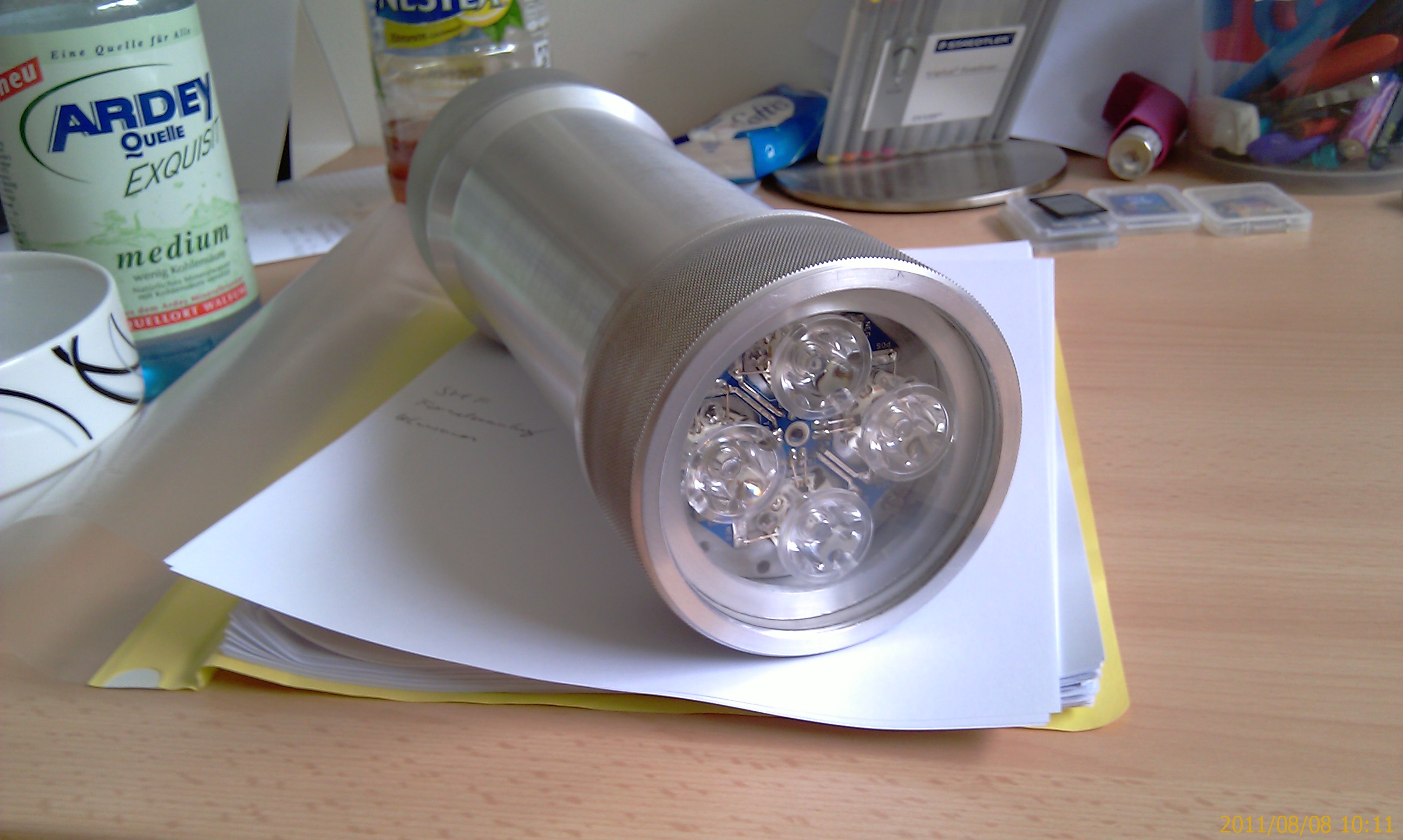 Das Ding ist totaler Mumpitz. Eine einzige 50W-Highpower LED und das Ding wär kleiner, leichter und so hell wie ein Autoscheinwerfer. Alles was mit 20mA-LEDs gebaut ist, ist Spielerei. Noch dazu die etlichen Schalter auf der Rückseite, die vollkommen Schwachsinnig sind...