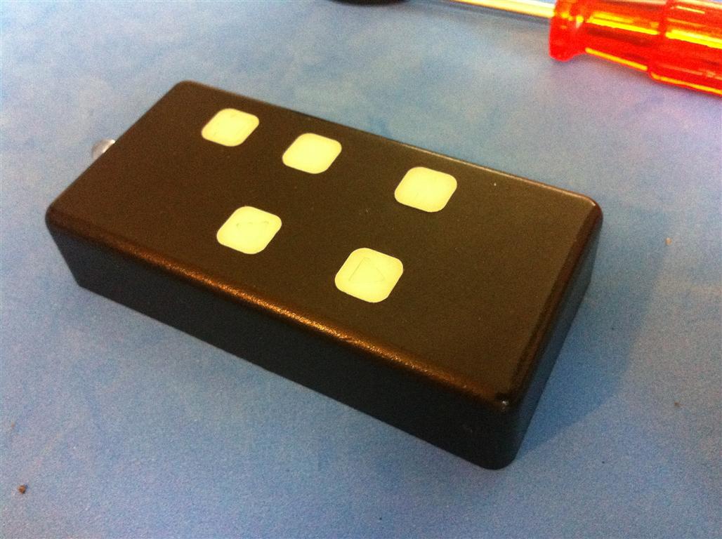 Besonders schick wird es jetzt, wenn du die Icons etwas schmaler ausfräst und mit Gravierwachs in passenden Farben auslegst, http://shop.schula.de/product_info.php/cPath/0_231_292/products_id/9245 und dann die Knöpfe von unten mit einer weissen SMD LED beleuchtest