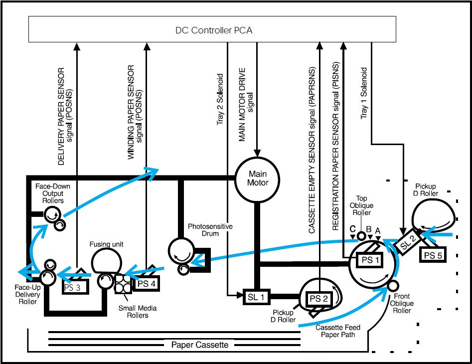 > Um sachliches beizutragen ... > Das wird wohl ein Schrittmotor sein Nö. Quarztstabilisierter Drehstrommotor, aka BLDC bzw. Spindle Drive Motor. Die beiden übrigen Leitungen werden zu seiner Ansteuerung sein, muß man halt ausprobieren (besser nicht mit 24V) oder rausfinden. http://www.technodirect.net/Items/rg5-2786-000cn-u?&caSKU=rg5-2786-000cn-u&caTitle=HP%20RG5%202786-000CN%20Main%20Motor%20Assembly%20LaserJet%206P%206MP Vielleicht gibt es ein Service-Manual
