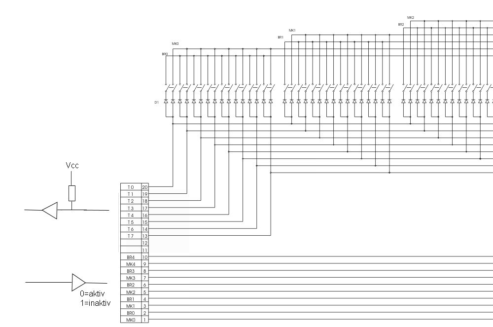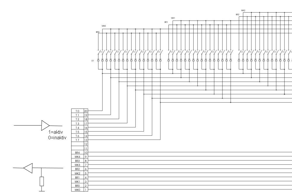 Zum Schaltplan: "MK" heißt "make" und "BK" "brake", das sind Schließer und Öffner. Für die Anschlagdynamik ( laut/leise spielen je nach Anschlaggeschwindigkeit) wird die Zeit zwischen Öffnen und Schließen gemessen.