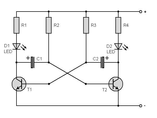 12.5% Abweichung gegenüber deinen 8 Sekunden. Der NE555 hält seine ein mal eingestellte Frequenz besser als 1%, wenn nicht die Alterung eines Elkos ihm zusetzt, weil er ein vernünftiges Prizip verwendet (umladen um 1/3 der Spannung mit scharfen Schaltschwellen durch Vergleich der Spanung mit den Spannungsniveau eines Spannungsteilers). Noch besser ist ein CMOS-555 wie LMC555. LED +--560R--|<|-- +5V NE555--+ +--560R--|>|-- GND LED Für 9 Sekunden braucht man aber einen Elko :-) denn sonst braucht man für 8 Sekunden (4 Sekunden an und 4 Sekunden aus) und 1uF satte 5.6 Megaohm - zu viel für einen NE555, vielleicht akzeptabel für einen LMC555. Maximal bekommst du einen Folienkondensator für 4.7uF, dazu gehört dann ein Widerstand von 1.2 MOhm und ein Trimmpoti von 100k, das könnte mit einem NE555 noch hinhauen. Der astabile Multivibrator ist von allem möglichen abhängig, er hat schon mal 2 Elkos die nicht gleich sind, nud schaltet wenn ein Transitor seine Basisschwellspannung von ca. 0.65V überschreitet, und de ist bekanntlich Temeraturabhäng. Und weil sie nicht abhängig von der Versorgungsspannug n ist, aber das entladen des Elkos von der Versorgungsspannung erfolgt, ist die Zeit auch nicht versorgungsspannungsabhängig. Also Bauteiltoleranzabhängig, Temperaturabhängig und Versorgungsspannungsabhängig und damit kaum 10% stabil.