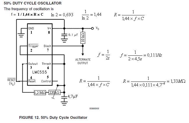 Hey, du hast mir wirklich geholfen! Hast du zufällig die komplette Schaltung irgendwo gesehen? Jetzt verstehe ich auch warum die 555-Schaltung die präzisere ist. :-) Mit welchen Formeln hast du das denn errechnet? Ist das hier der richtige? http://de.farnell.com/national-semiconductor/lmc555cm/zaehler-cmos-smd-soic8-555/dp/9493972 Gruß Alex