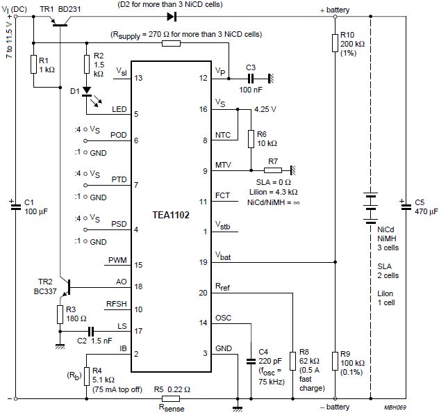 Hi, ich hoffe ihr könnt mir bei meinen Fragen und Problemen helfen. Ich versuche(bzw. ist schon aufgebaut) diese Schaltung nachzubauen. Grundsätzlich möchte ich gerne 4 NiMh Zellen damit laden. Netzteil habe ich ein 12 V, 2250 mA. Jedoch bin ich im Elektronik Bereich noch ein Frischling. Daher auch folgende Fragen: Kann ich die Masse direkt mit ans Minus anschließen oder muss es definitiv einzeln an eine Masse oder irgendwo geerdetes dran? Wie ist dies eigentlich mit den Anschlüssen POD,PTD, PSD zu lesen/interpretieren? Der Widerstand soll ja unendlich Groß sein bei R7, ergo habe ich da nichts angeschlossen. Ist dies den Richtig? Einen Versuchsaufbau habe ich schon getan, dabei habe ich POD, PTD, PSD ich unangeschlossen gelassen. R7 weggelassen und die Masse an einen Zusatzpin einer Stecker Einbaubuchse. Bei Anstecken des Akkupacks leuchtet die LED ein Paar Minuten, danach Schaltet diese ab.Und das trotz leerer Akkus. So richtig durchgestiegen bin ich nicht und hoffentlich kann mir dessen jmd helfen. Tut mir leid für die vll für euch simplen Fragen. Viele Grüße Daniel