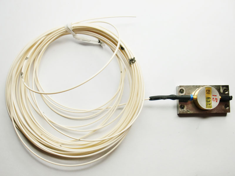 Verkaufe mein IR Lasermodul (808 nm) mit einer Ausgangsleistung von 3W mit etwa 2.5m Glasfiber dran. Es wurde im 2008 in einem Plotter eingebaut (kunststoff Platinen schneiden). Anfang von 2010 wurde es wieder vom Plotter entfernt, wegen der niedrigen Menge Aufträge. Das Lasermodule ist deshalb 100% funktionsfaehig ! Uf : 2.3 V DC If : 1.3 A P : 9500 W/cm2 Glasfiber diameter : 0.15 mm Protective coating diameter : 0.20 mm Weisse Schutzhulle diameter : 0.85 mm Abmessungen Modul : 30.1 x 15.9 x 11.7 mm (L x B x H) M2.5 Bohrloch : In jeden 4 Ecken Preis : 100 EUR zzgl Versand. Aufm : Plotter oder Schutzbrille werden nicht mitgeliefert. Also sollte man die notwendigen Vorsichtsmaßnahmen treffen.