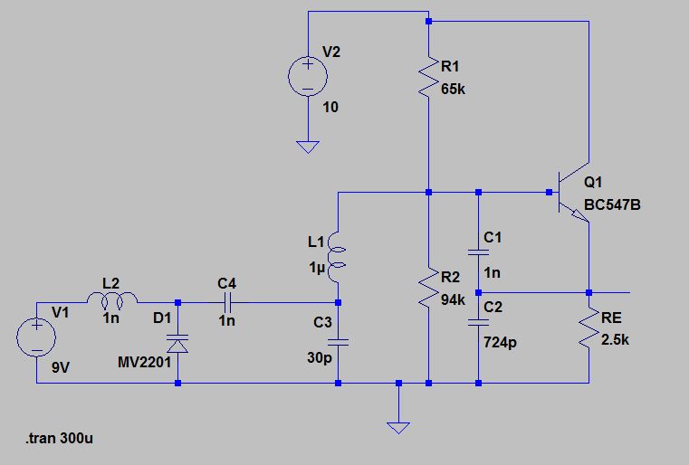 Alles klar das klingt logisch :-) Nur hat die Güte auch was damit zu tun das wenn L2 oder ein 100k Widerstand in der Schaltung ist der Schwingkreis nicht mehr schwingt, und ohne dem L2 bzw dem Varactor der Kreis wunderbar schwingt?
