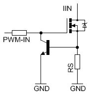 Am PWM-IN Widerstand natürlich. Die Spannung an der Basis hängt vom Strom durch den Mosfet ab, damit auch die Spannung am Gate. Strom steigt -> Spannung am Widerstand steigt, Transistor beginnt zu leiten, MOSFET bekommt weniger Gate-Spannung, leitet weniger Strom, der Strom Sinkt, also auch die Spannung am Widerstand.
