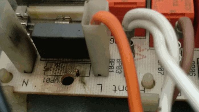 Hallo, mein AEG Electrolux Gerät weißt die o.g. Probleme auf, Gerät schaltet nach geraumer Zeit aus, Lüftung ist nicht zu hören und sogar die Sicherung im Hausanschluss kommt. Ist das Gerät abgekühlt, hört man ein Knacken und das Gerät funktioniert wieder. Allerding finde ich das o.g. Thermorelais nicht...siehe Bild.