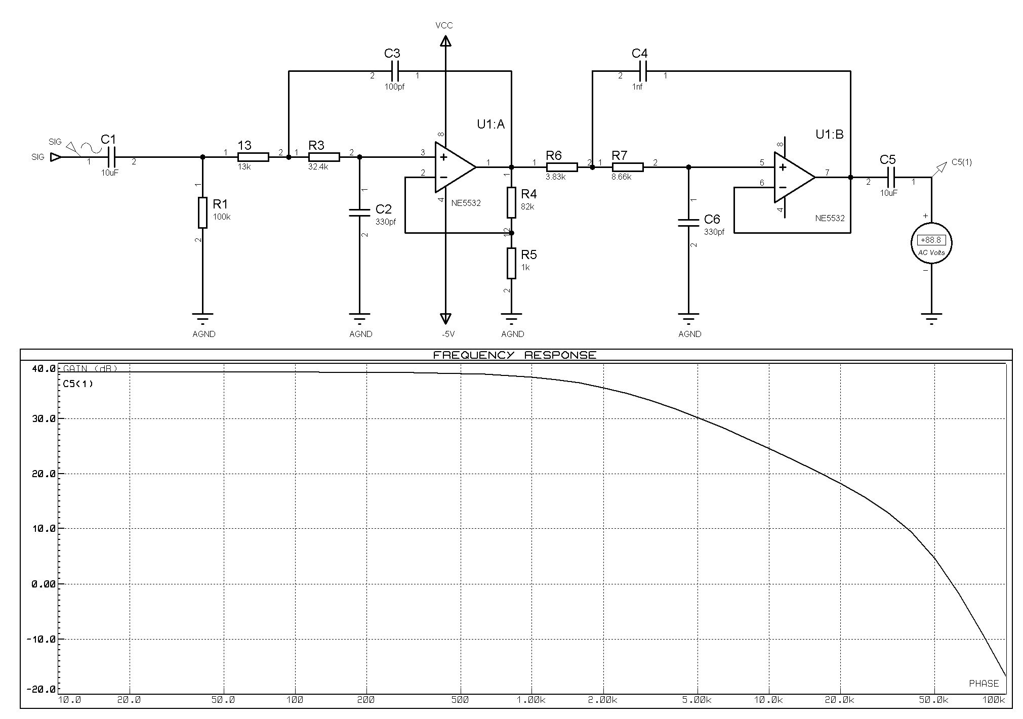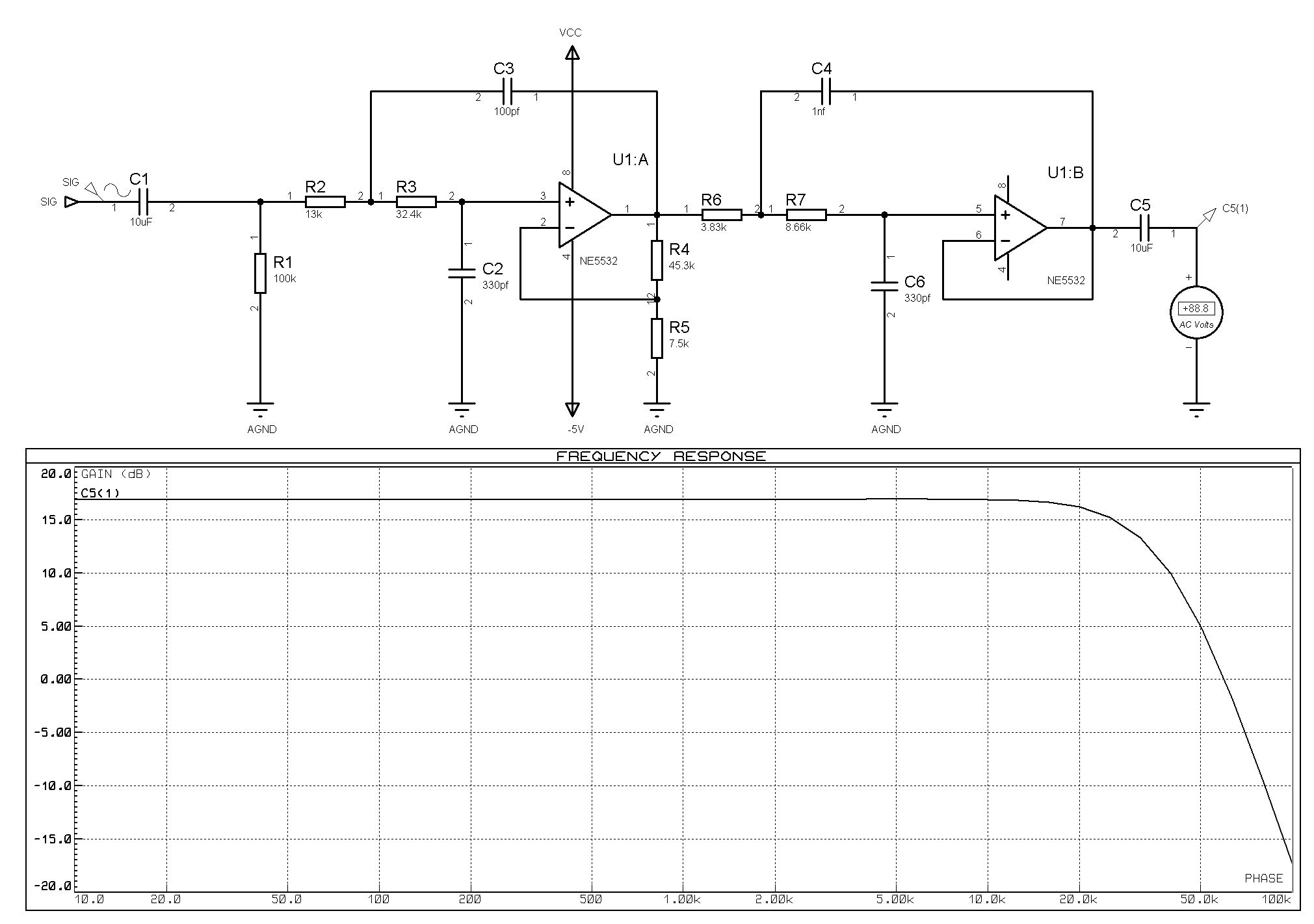Hallo, R4 und R5 haben nichts mit der Filterfunktion zu tun sondern bestimmen die Verstärkung. Gruss Klaus.