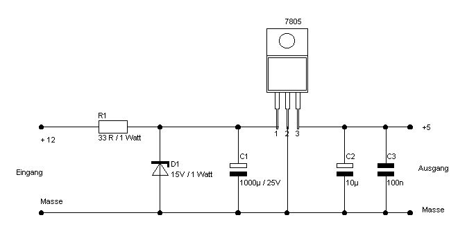 Du mußt doch lediglich für den Prozi und empfindliche Logik die Bordspannung stabilisieren, was Du steuern willst, kannst Du mit spannungsfesten Transistoren oder FETs von Masse nach +12V schalten, da muß nix stabilisiert werden. Also sollte die Leistungsaufnahme der Schaltung doch eher geringer sein oder? Testschaltung Filter im Anhang.