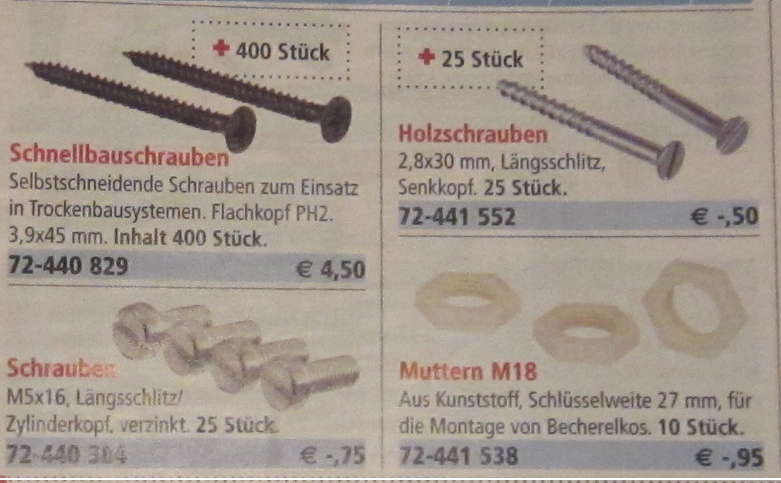 Hans H. schrieb: > Ist doch klar: > Bei den Schnellbauschrauben steht das + für Kreuzschlitz, > und bei den Holzschrauben haben sie sich vertan. > > (Wer kauft 2011 noch Holzschrauben mit Langschlitz?!) ;) Aus deiner Sicht betrachtet, wirkt es durchaus plausibel- aber irgendwo im Forum ist doch eh ein Pollin MA angemeldet...