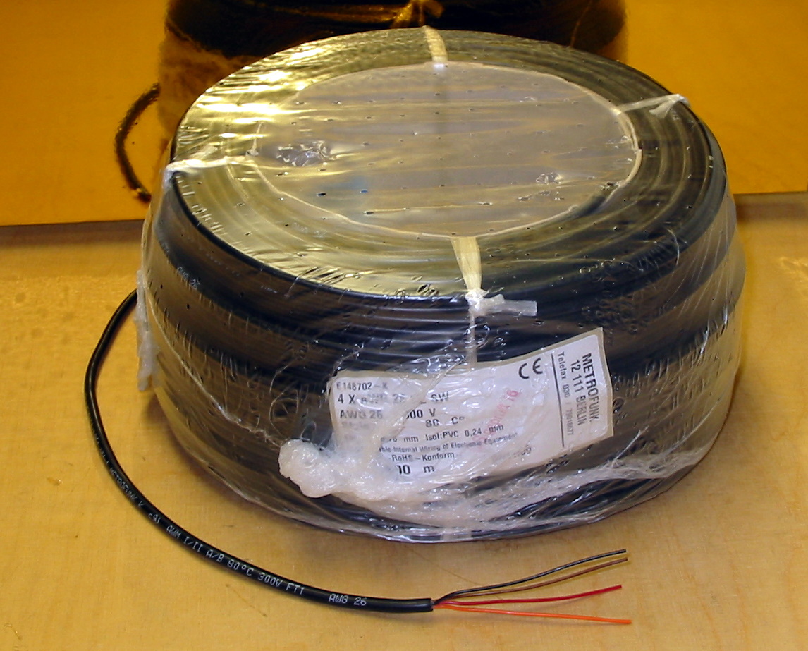100m 4 x AWG 26 (0,14mm²) ungeschirmt - Qualitäts-Steuerleitung (Metrofunk Berlin) - Material ist schwer zu entflammen und zusätzlich selbstverlöschend - Im Brandfall entwickeln sich keine aggressiven Halogene - Rolle noch verschweißt in Originalfolie Kabelbeschreibung: http://www.metrofunk.de/servlet/metrofunk/detail/512.html Preis: 30 Euro inkl. Versandkosten (DHL Paket) hb248 Klammeraffe t minus online Punkt de