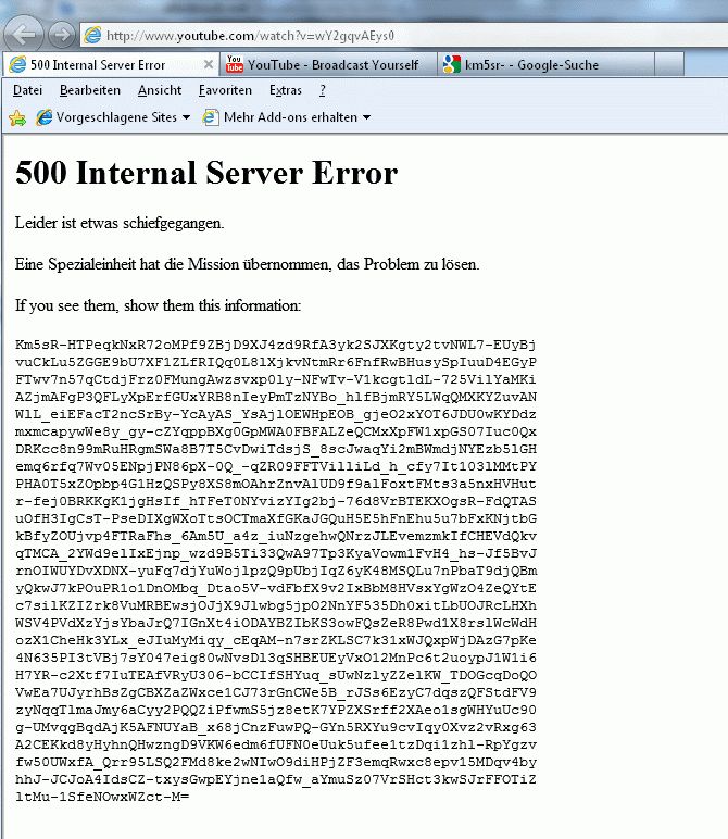 Anscheinend gibt's das schon länger: http://www.cambus.net/decoding-youtube-http-error-500-message/ Wenn es base64 bzw. base64 for URL applications ist, dann ist es zusätzlich wohl noch verschlüsselt.