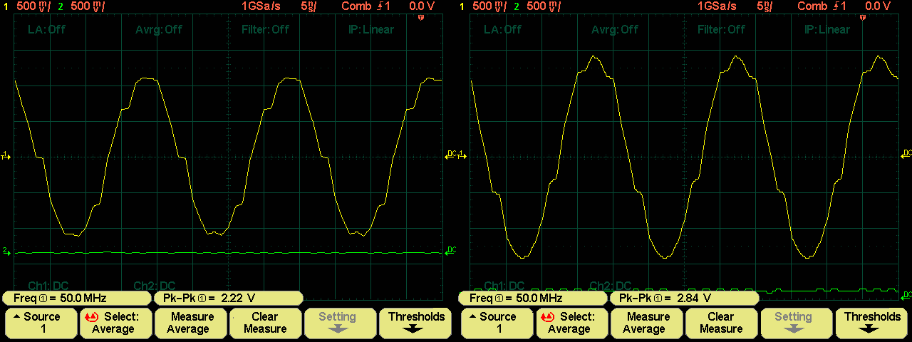Hi Hayo, I tested the last firmware with two IC OPA653 installed works well up to 230 MHz. Used reference HP3325A / TDS540A and with gain 1.00 accuracy is so good. Just a a minor bug the test signal is triangular. Thank you and Regards, Sandro