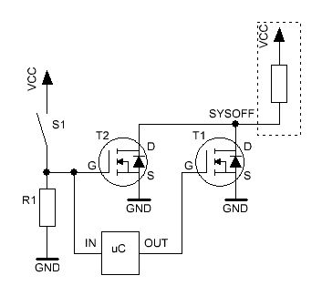 @tip: Mittlerweile ist deine Lösung genau so aufwändig wie meine mit den NPN Transen (http://www.mikrocontroller.net/attachment/122360/SYSOFF.PNG), nur dass meine Lösung für den Controller definitiv ungefährlich ist ;) Meine Schaltung sollte sich allerdings genau so mit MOSFETs einsetzen lassen.