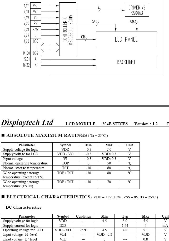 Also, das DIP204 von Electronic Assembly arbeitet auch mit 3,3 Volt. Es ist noch bei Reichelt erhältlich. Darüber hinaus kann man es anstatt am dem 4-Drahtbus + 3 Steuerleitung an den SPI-Controler des µC anschließen. Die Initialisierung ist auch wesentlich einfacher als die HD-Kompatiblen-LCD-Controler. Das Display arbeitet mit dem KS0073 von Samsung. Zum Encoder habe ich keine Idee.