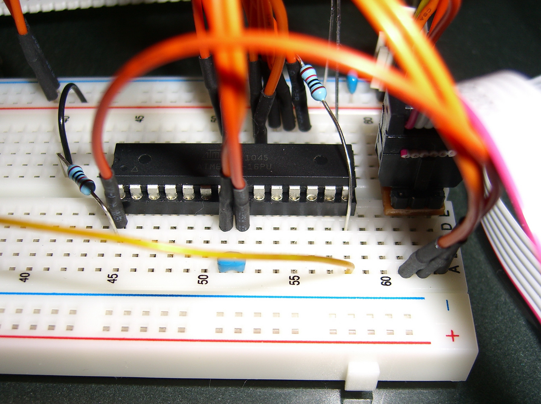 Ich habe ne Grundschaltung auf einem Breedboard mit einem ATmega 8 (und