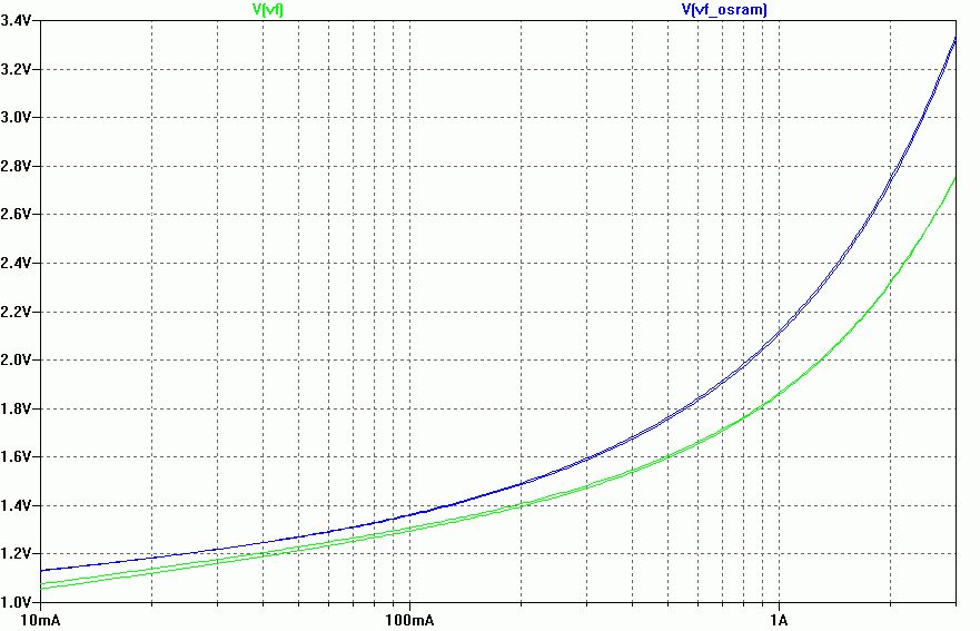 OSRAM-IR-5MM RADIAL.lib Hab mal das OSRAM-Modell mitsimuliert. Vielleicht ist die Spannung ja tatsächlich höher wie in der Datenblattkurve. Die niedrigere Kurve ist mein ursprüngliches Modell.