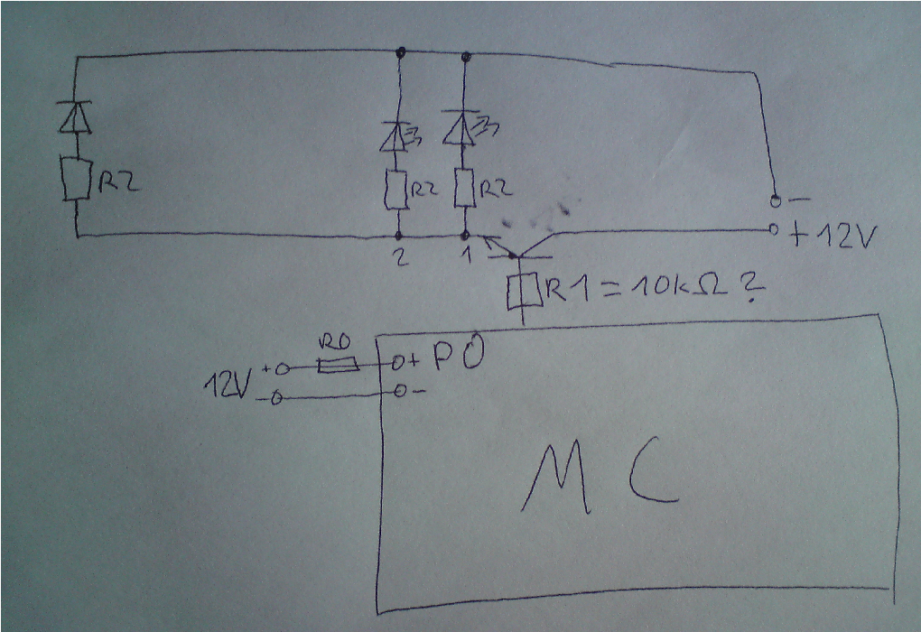 Hey Leute, ich würde gerne mit meinem 89S51 ein Projekt zum ansteuern vieler LEDs realisieren. Über 3 Ports sollen jeweils ca. 50 LEDs angesteuert werden. Daher soll jeder Pin eines Ports an einen Transistor angeschlossen sein, der 6 bis 7 LEDs ansteuert. Ich habe auch mal einen Schaltplan skizziert, mit der Bitte, diesen auf Fehler zu überprüfen, und mir die Werte der Widerstände zu sagen. Ich verwende ein altes PC Netzteil, daher die 12V Gleichspannung. Muss ich überhaupt an jede LED einen Widerstand anschließen, oder reicht einer, den ich zwischen Spannungsquelle (+) und Transistor anschließe?