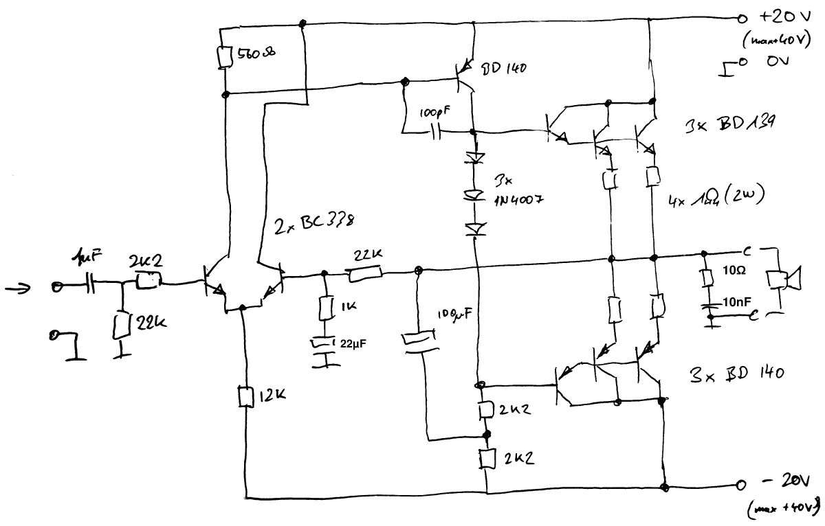 Oliver R. schrieb: > ähh wollte ein png anhängen.... also hier Damit wirst Du nicht viel Leistung erreichen. Oliver R. schrieb: > Ich hab 20 BC338 > und jeweils 5 BD139/BD140 Versuch mal dies (Bild) Gruß Jobst